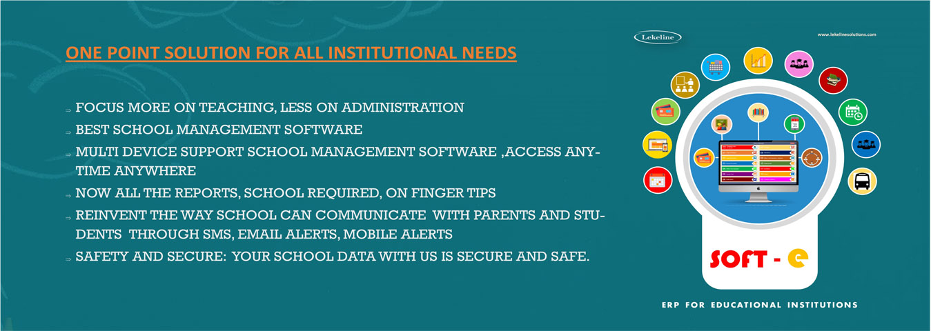 SOFT’e is an ERP, Comprehensive School Management and Administration Software Solution developed by Lekeline Solutions Pvt Ltd. The solution has been designed in such a way that it manages all the day to day activities of the School. It provides Management Information System (MIS) reports anytime anywhere for efficient School Administration by the School Management.